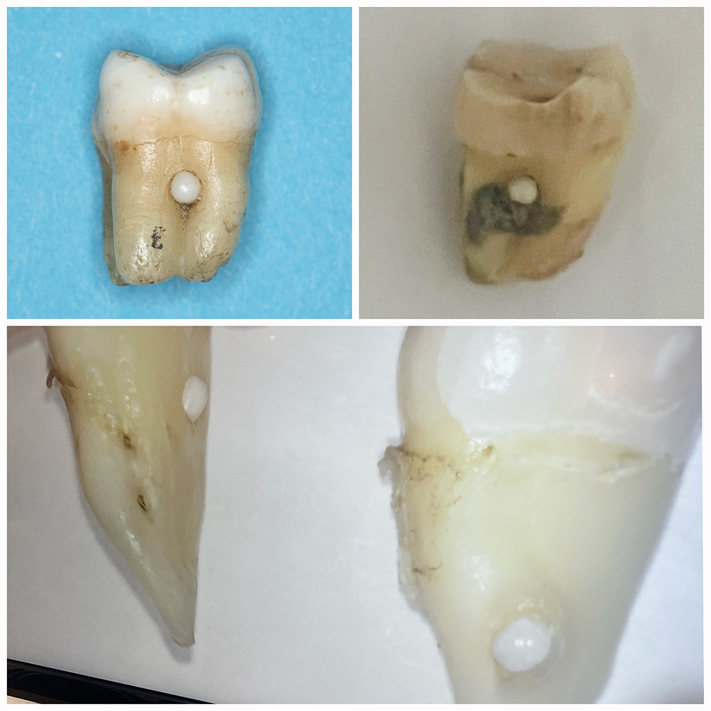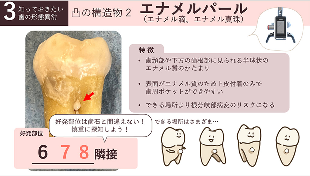 探知で歯石に間違われやすいこのエナメルパールは元々の形態です。