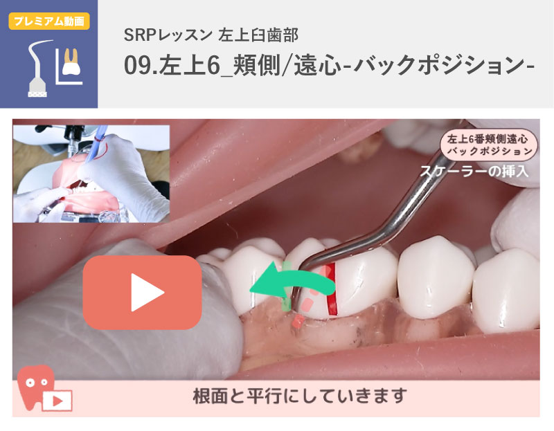『SRPレッスン 左上臼歯部 左上6頬側遠心-バックポジション–』です。