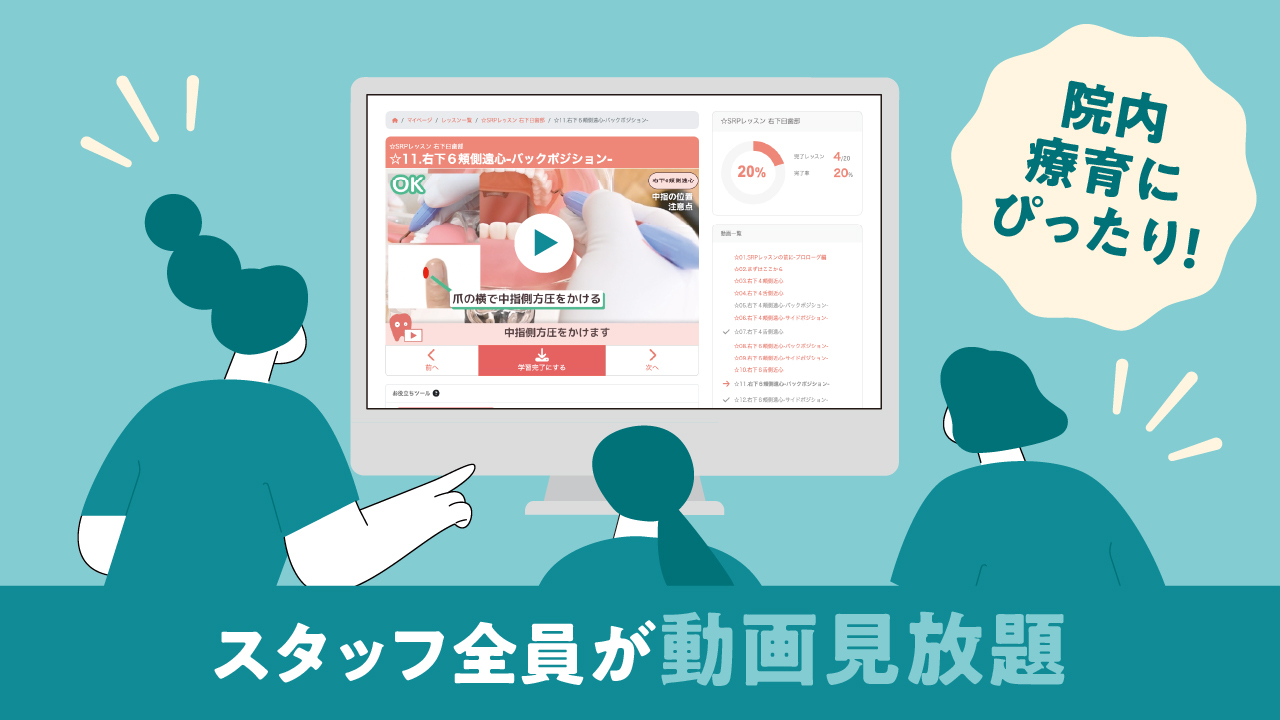 歯科助手さん向けの動画もあるので、6人以上スタッフがいる医院さんは断然おトクです!