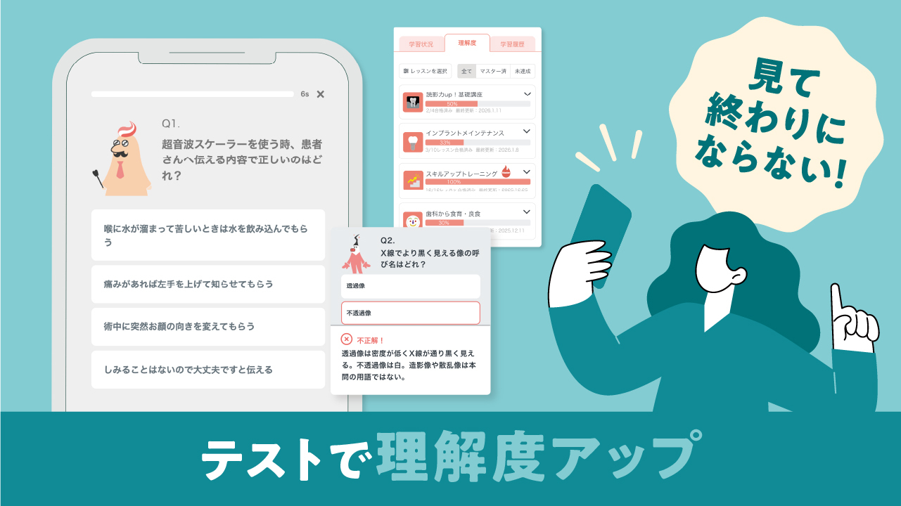 動画を見るだけで終わらず、どれだけ理解できているかをその場でチェックできます。