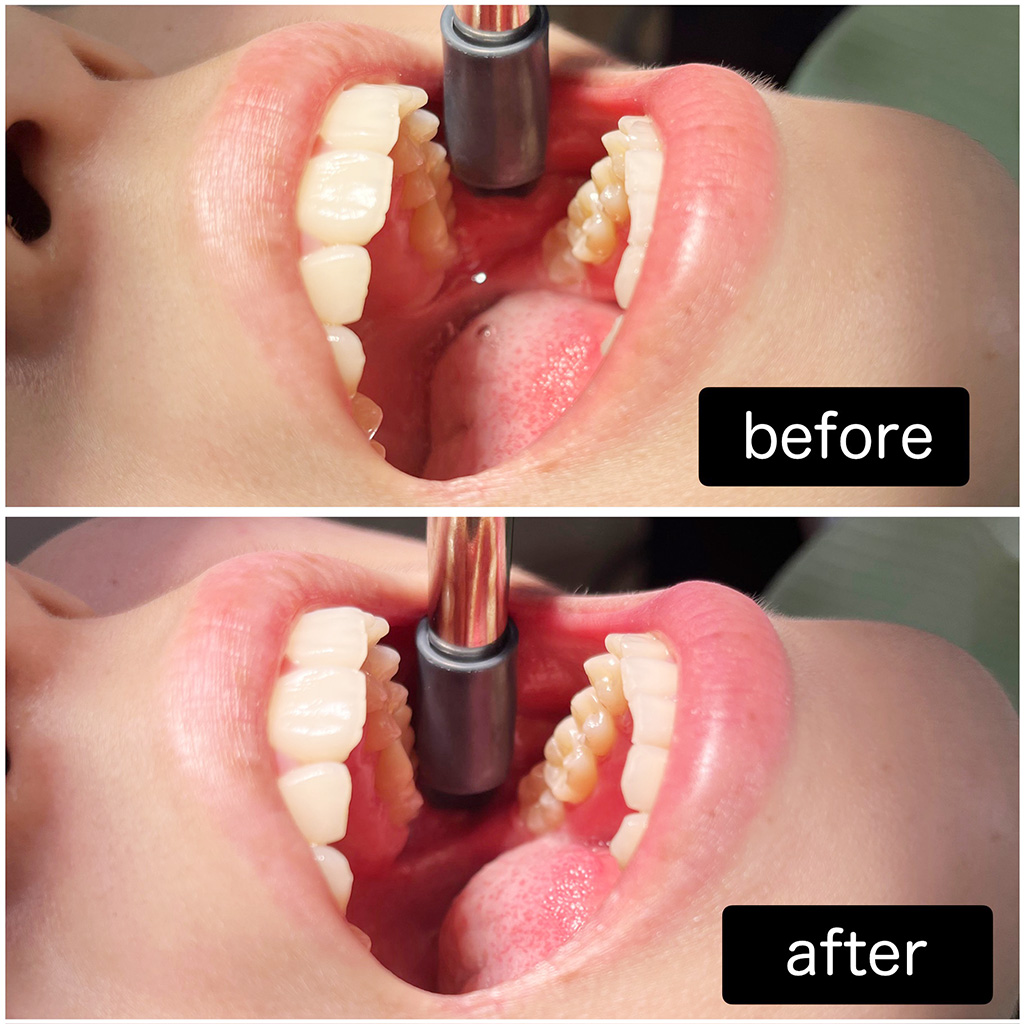基本的には、術歯の近くで吸引し、お口の奥に水や唾液が溜まった場合は臼後三角で適宜吸引します!